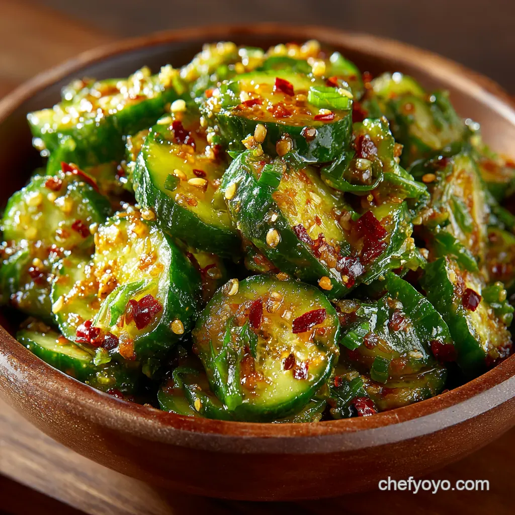 Want a true Spicy Cucumber Salad ? Swap out the chili flakes for a teaspoon of high-quality Gochujang (Korean chili paste).