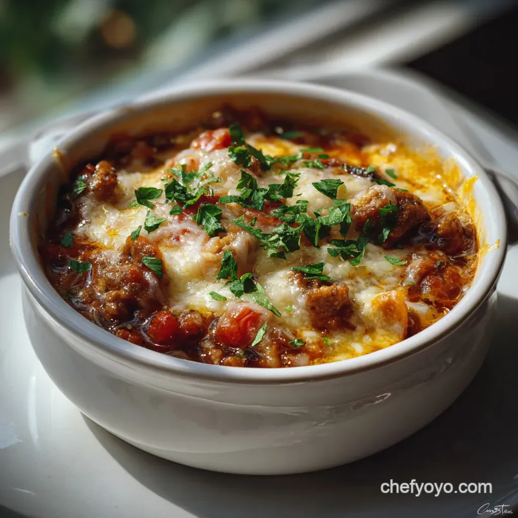 A simple arugula salad with a lemon vinaigrette provides the necessary acid to cut through the heavy cheese and meat. Alternatively, a thick slice of sourdough bread toasted with garlic butter is the traditional choice for a reason it is the perfect vessel for soaking up every last drop of that umami rich broth. If you are looking for something a bit different, perhaps a side of roasted broccolini with red pepper flakes would offer a nice textural change. This dish also shares a comfort profile with The Creamy Homemade recipe for those nights when you just need a bowl of something warm.