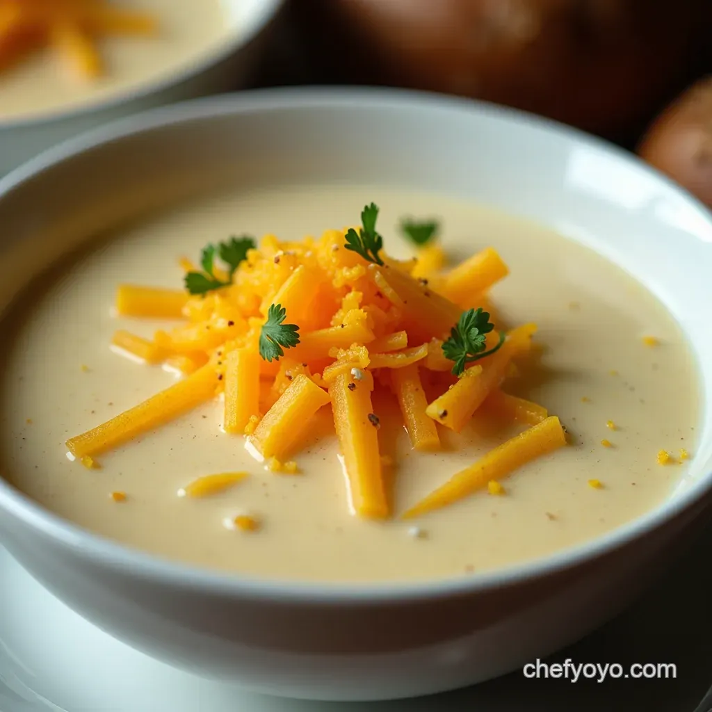Presentation matters, right? Even with something as humble as soup. Load it up! Think about it. A swirl of sour cream , a generous sprinkle of shredded cheddar , crispy bacon bits , and fresh chives .